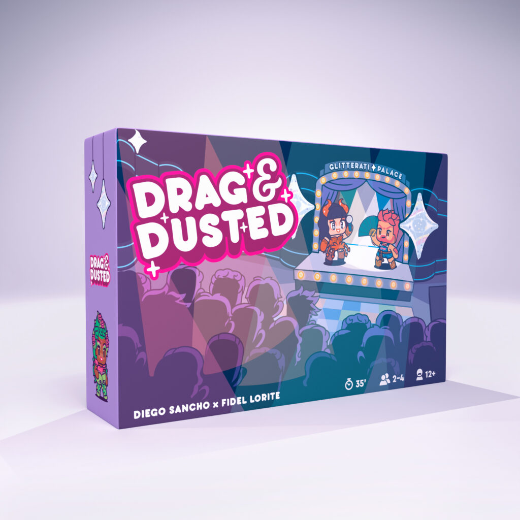 Drag & Dusted está diseñado para ser jugado de 2 a 6 personas. Es fácil, rápido y fomenta la interacción y la competencia entre los participantes. Utilizarás el tablero para situarte dentro del Glitterati Palace y mover a tus personajes drag. Crea tu atuendo para ganar talento y utiliza tus cartas para boicotear y robarle el protagonismo a tus rivales. Consigue tanta fama y fans para hacerte con la carta VIP y ganar el juego.